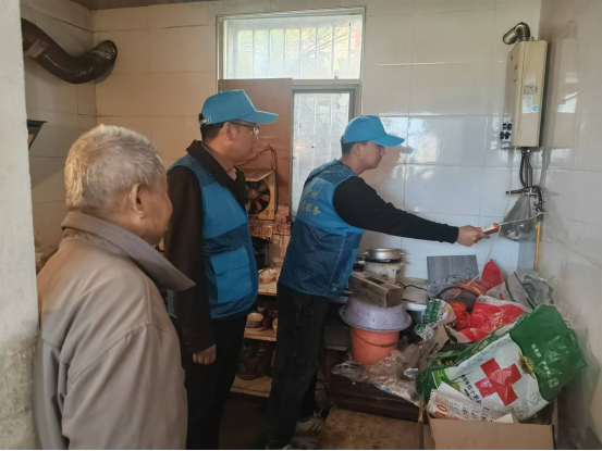 在西湖社區(qū)、珠明山社區(qū)等社區(qū),藍焰志愿者服務隊與社區(qū)網(wǎng)格員一起,逐一走訪轄區(qū)特困家庭,與他們悉心交談,關切詢問家庭情況、生活困難和需求訴求,并為他們送上免費安檢、上門充值等志愿服務。安檢人員用燃氣檢漏儀對用戶家中燃氣灶及熱水器等燃氣設施進行全面細致的檢查并發(fā)放宣傳彩頁,詳細地講解冬季安全用氣的注意事項并現(xiàn)場演示應急處置流程;免費對燃氣設施進行維護維修;為殘疾、獨居行動不便的老人辦理燃氣充值服務并對廚房衛(wèi)生進行清掃,同時送上慰問物資表達齊安中燃的關愛。公司領導劉神及客戶服務部、黨群工作部等部門員工參加本次活動。
